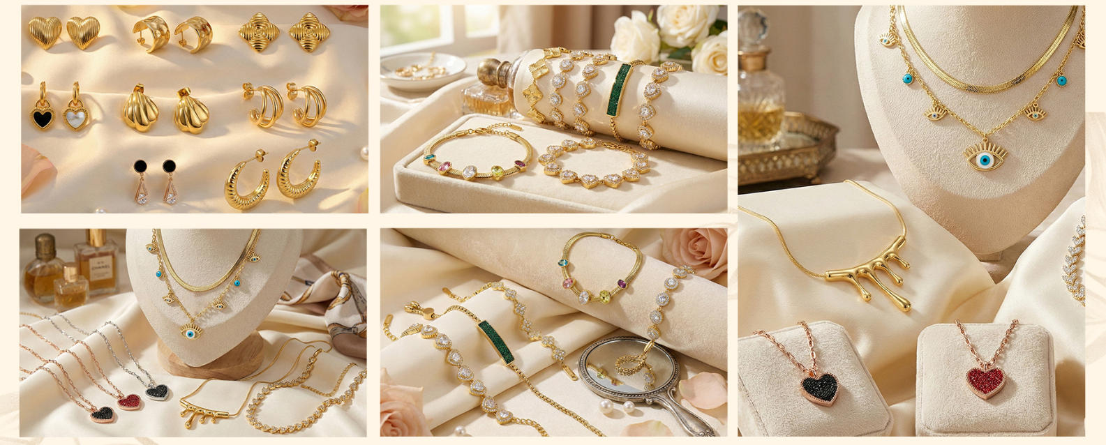 18K Gold Plated Stainless Steel CZ Diamond Heart Leaf Clover Pendant Necklace with Link Chain for Women's Trendy Fashion Jewelry