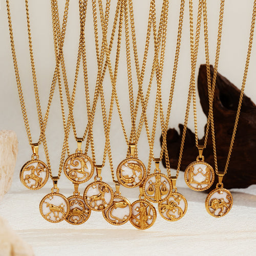 12 Zodiac Signs Stainless Steel Necklace Versatile Women's Round PVD-Plated Fashion Shell Necklace