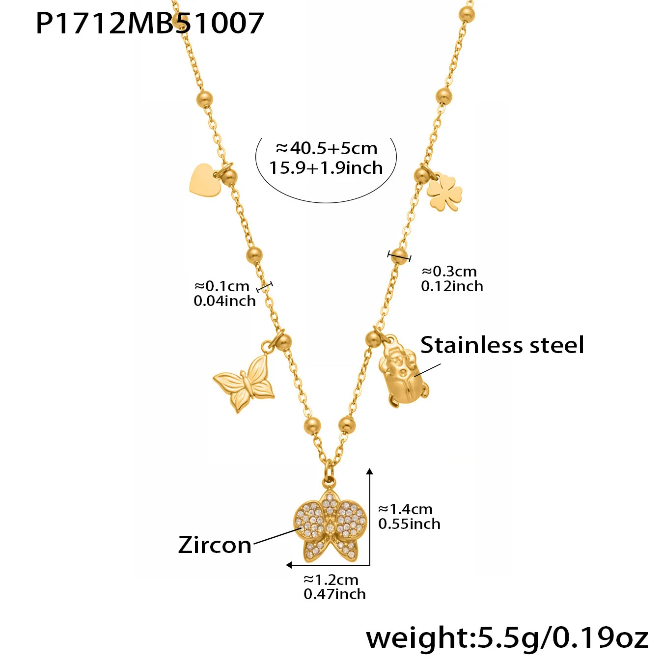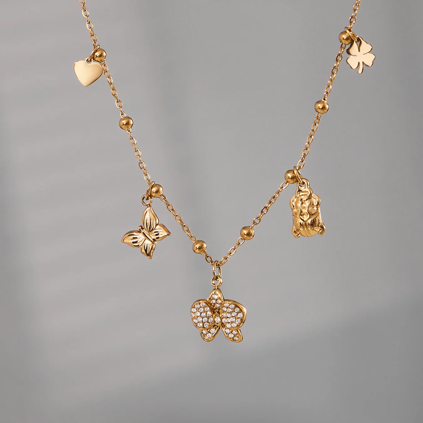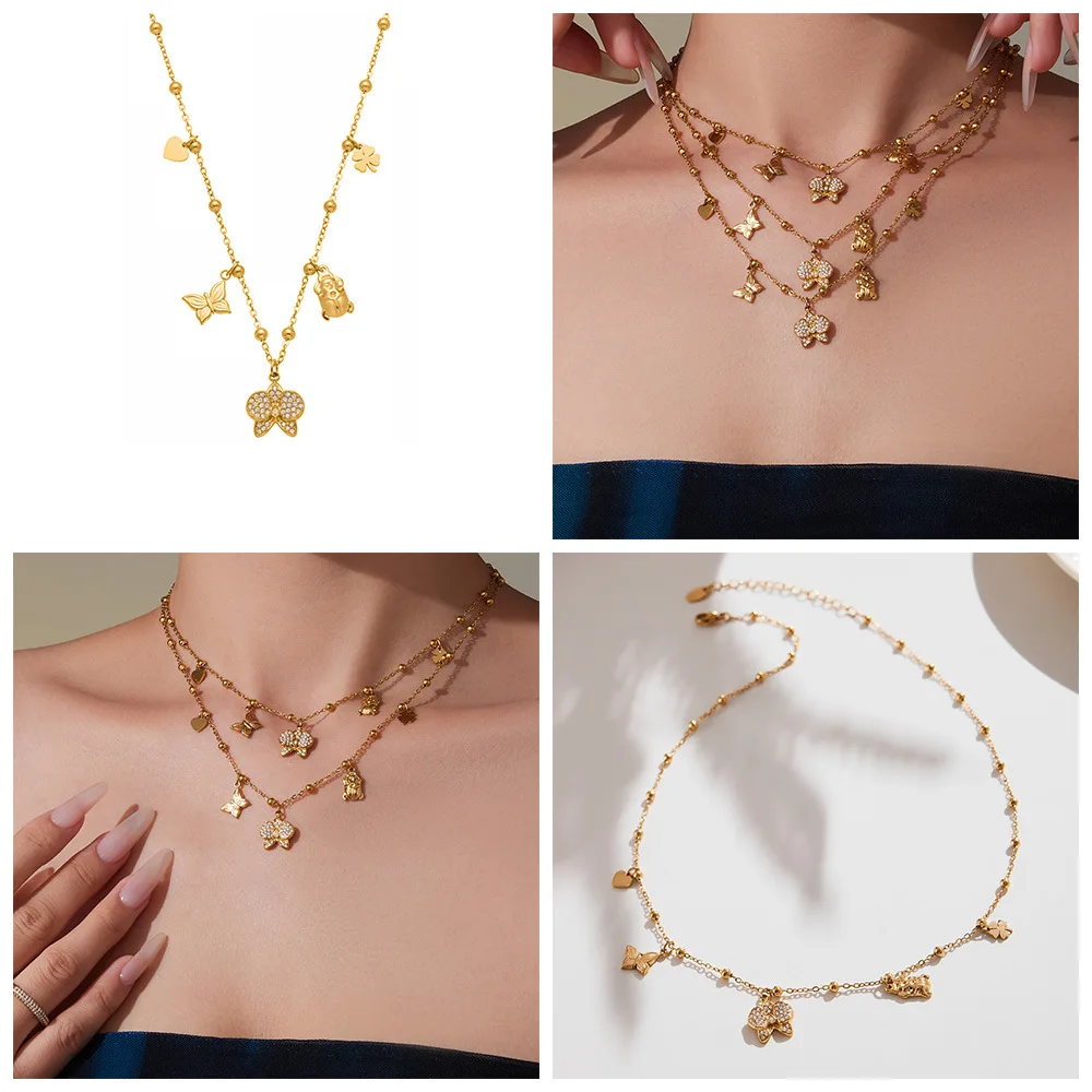 Customizable PVD 18k Gold Plated Stainless Steel Charm Necklaces Trendy Butterfly Heart with Zircon for Girls for Parties