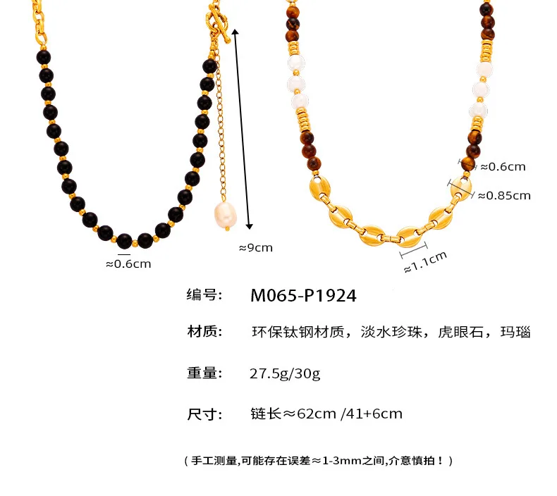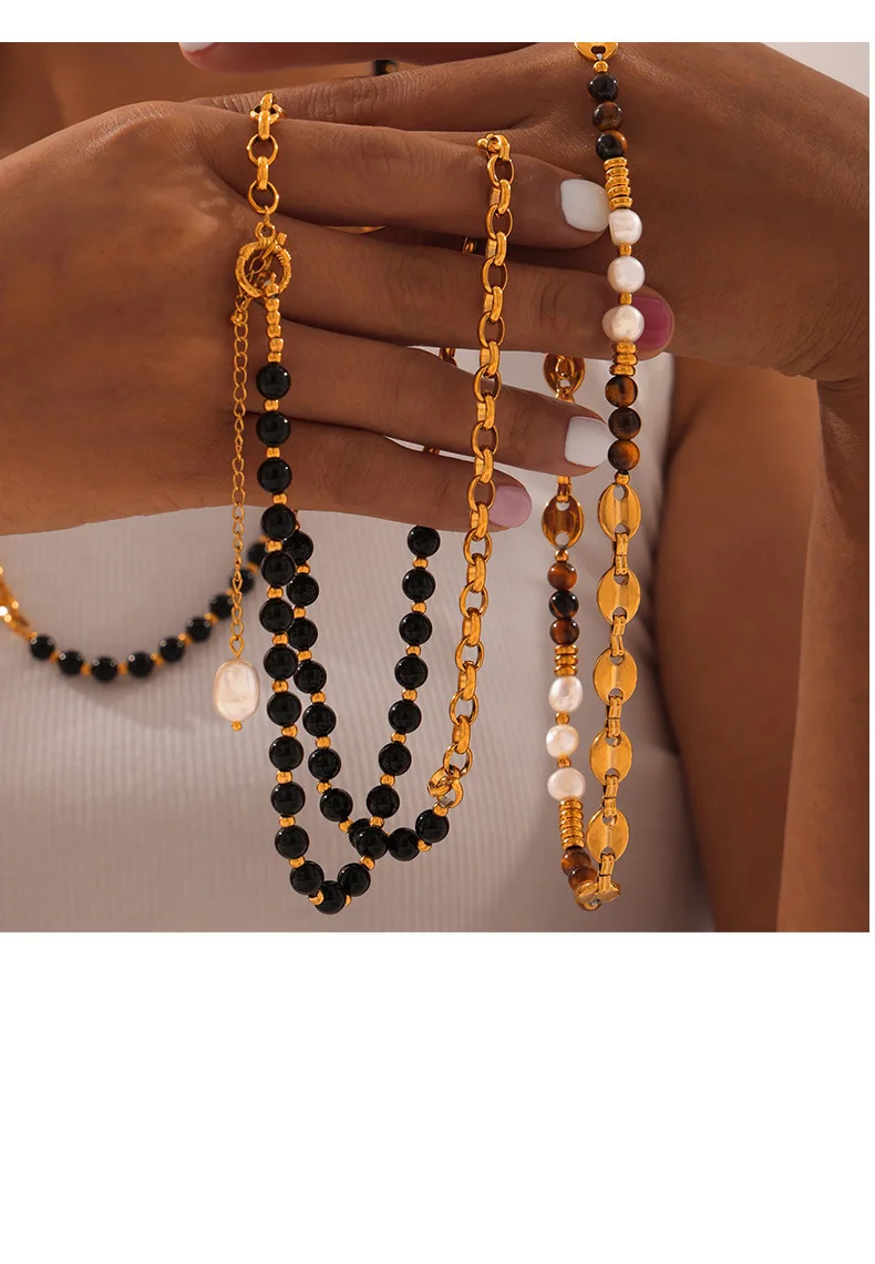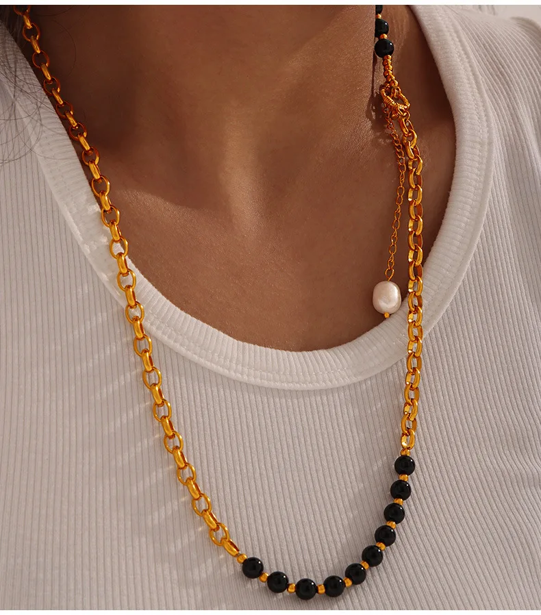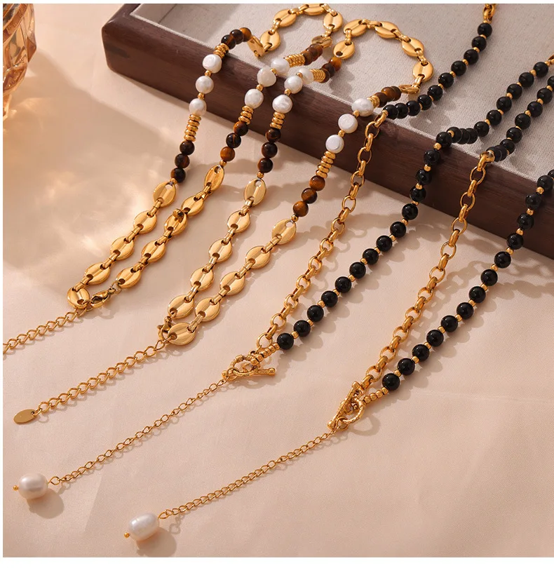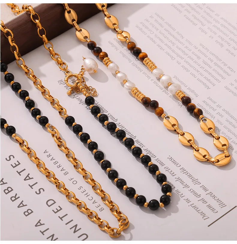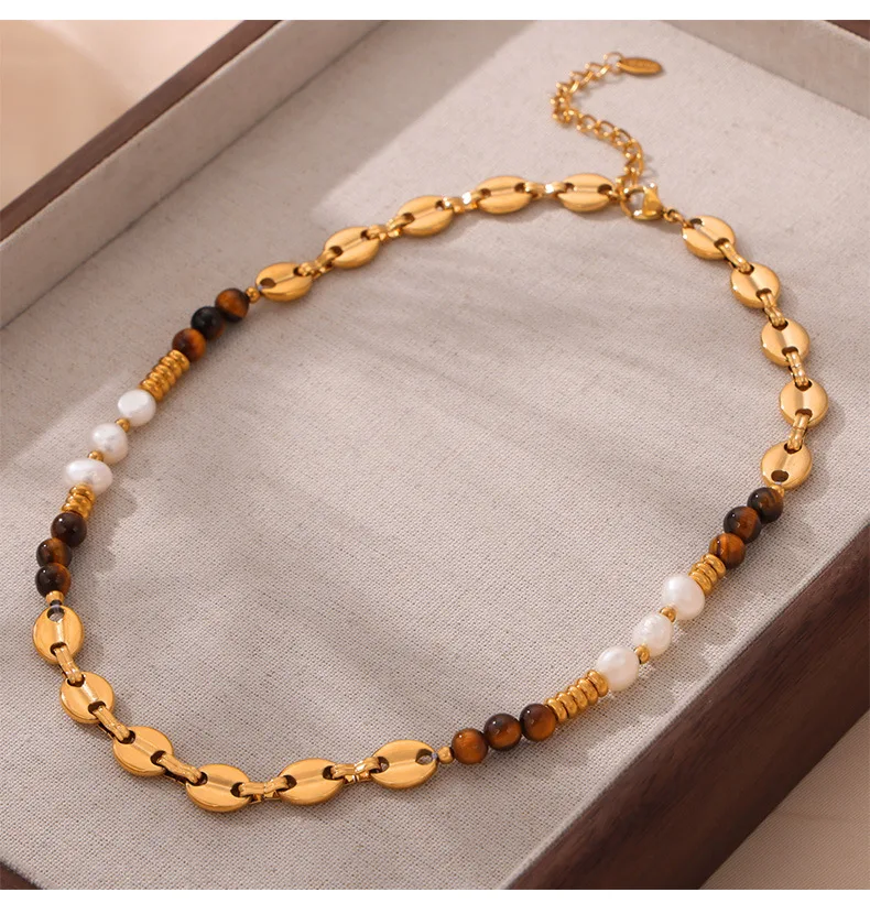 Customizable Vintage Necklace Natural Stones Pearls 18K Gold PVD Plated Stainless Steel Peace Design Unisex Beaded Party